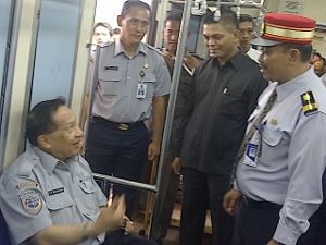 Menteri Perhubungan EE Mangindaan singgah di Stasiun Parung Panjang sambil meninjau pembangunan rel kereta ganda tujuan Serpong, Parung Panjang dan Maja.