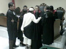 Umar Patek tidak bisa menyembunyikan perasaan sayangnya pada sang istri. Tanpa malu-malu, di depan hakim di persidangan, terdakwa kasus terorisme ini memeluk istrinya. Uhuuuy!