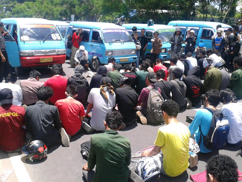 Puluhan mahasiswa dari Universitas Sawerigading dan Universitas Islam Makassar berunjuk rasa menolak kenaikan harga BBM. Mereka memblokir pintu masuk kantor Gubernur Sulawesi Selatan.