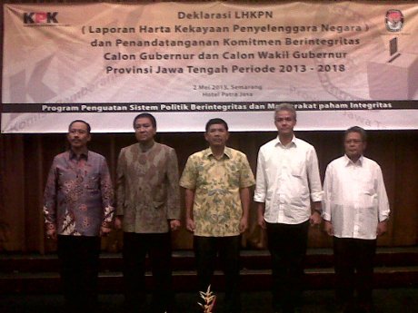 Jelang Pemilihan Gubernur akan digelar 26 Mei mendatang, KPK menyelenggarakan Deklarasi Laporan Harta Kekayaan Penyelenggara Negara (LHKPN). Hadi Prabowo menjadi cagub terkaya, sedangkan pasanganny jadi cawagub termiskin.
