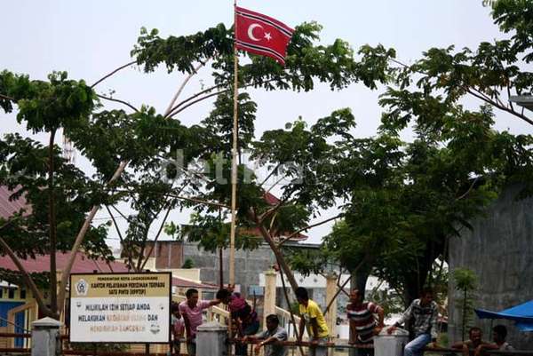Aparat gabungan menurunkan ratusan Bendera Aceh yang mirip dengan bendera GAM di sepanjang jalan kota Lhokseumawe. Polri memilih upaya persuasif, mengajak warga tak memasang bendera tersebut.