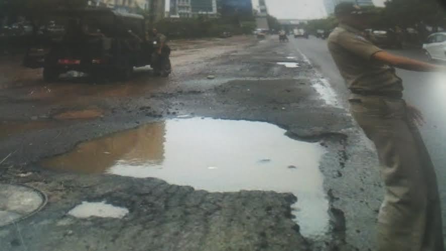 Jalan di kawasan Kelapa Gading, Jakut rusak parah setelah terendam banjir. Kerusakan jalan di kawasan itu benar-benar mengkhawatirkan. Waspada bagi para pengendara!