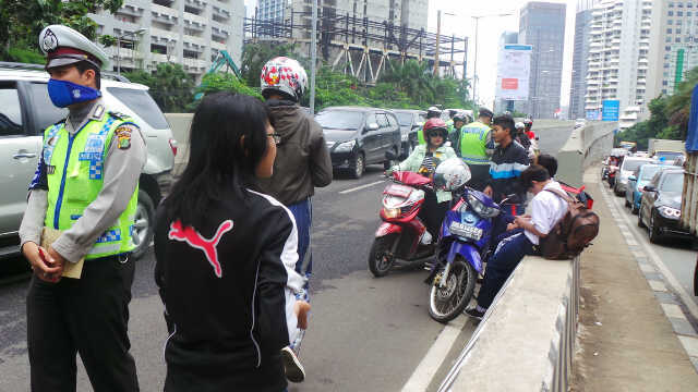 Aksi tindakan penilangan polisi dipertanyakan warga, mengapa harus di mulut keluar Jalan Layang Non Tol (JLNT) Tanah Abang-Kampung Melayu, bukan mencegah di mulut kendaraan masuk? Ini kata polisi.