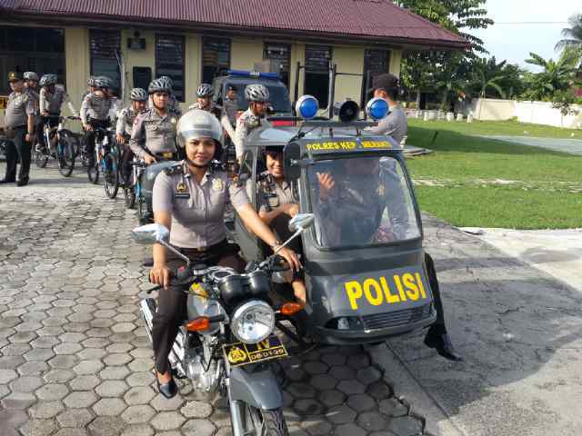 Inilah uniknya Polres Kepulauan Meranti di Riau. Dengan berbagai falisitas operasional yang minim, mereka punya motor becak sebagai patroli. 'Sopir'nya anggota Polwan.