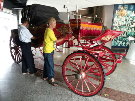 Kereta Kencana dari Solo yang teronggok di Anjungan DKI TMII ini sudah tidak lama dipakai. Namun kereta tersebut akan kembali diaktifkan, dipakai untuk mengarak Presiden terpilih Jokowi dari Bundaran HI ke Istana.