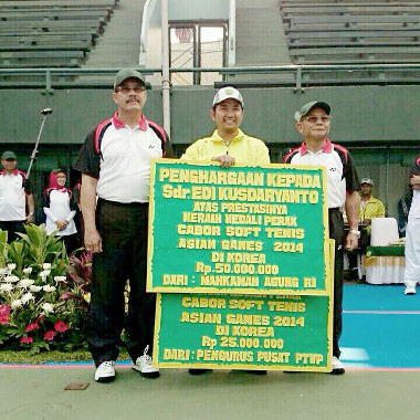 Edi Kusdaryanto, PNS Mahkamah Agung (MA) yang mendapat medali perak di Asian Games 2014 cabang soft Tennis mendapat penghargaan dari Ketua MA. Edi pun diberi imbalan senilai Rp 50 juta atas prestasinya.