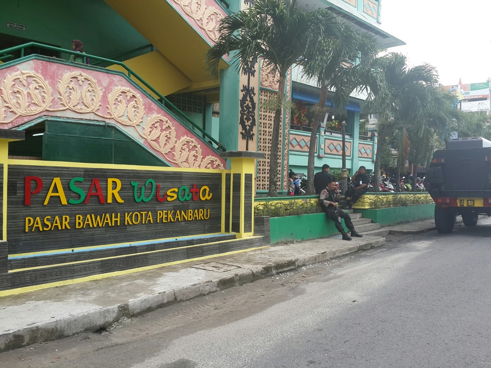 Pemandangan sedikit lengang terlihat di kawasan Pasar Bawah Pekanbaru yang akan dikunjungi Presiden Jokowi. Kendaraan roda empat dilarang parkir di sekitar pasar.