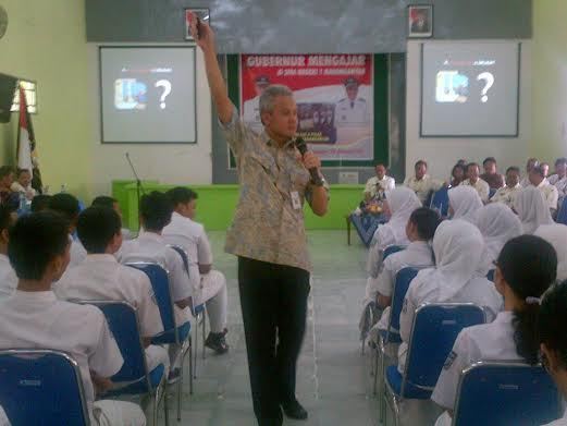 Dalam kunjungan kerja ke kampung halamannya di Kabupaten Karanganyar, Gubernur Jawa Tengah, Ganjar Pranowo sempat mengajar di SMAN 1 Karanganyar.