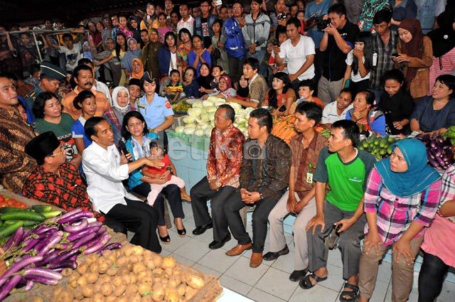 Usai menghadiri acara penutupan Kongres Umat Islam Indonesia (KUII) VI di Hotel Inna Garuda Yogyakarta, Presiden Joko Widodo sempat menyalami warga yang berada di depan Pasar Beringharjo. Petugas keamaan sempat kelabakan.