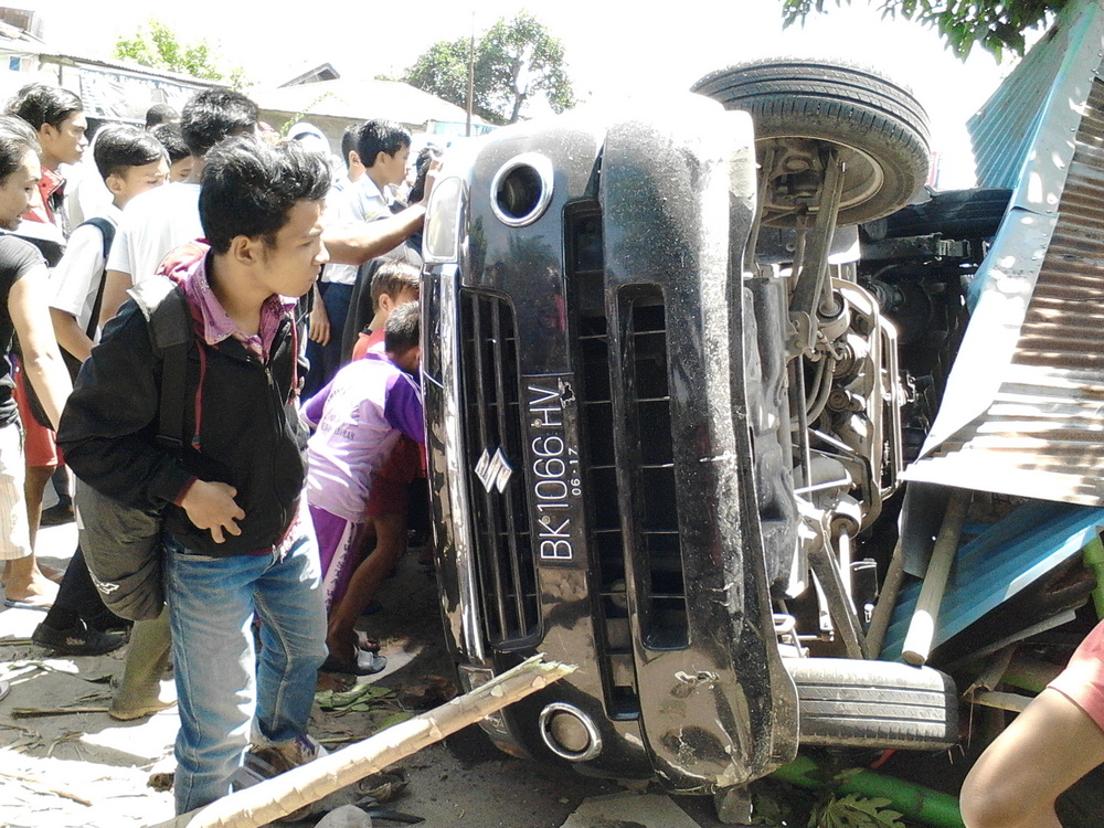 Seorang pria tewas setelah sepeda motor yang dikemudikannya ditabrak mobil Suzuki APV di Medan, Sumatera Utara (Sumut). Mobil itu sendiri terguling setelah insiden tersebut.