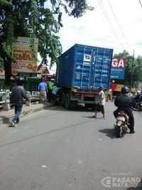 - Nyalip dari Kiri, Motor Terjepit Kontainer di Bekasi