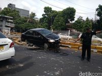 Kecelakaan tunggal terjadi di Jalan Mampang Prapatan, Jakarta Selatan. Satu mobil Honda City hitam menabrak separator busway dekat Halte Imigrasi.