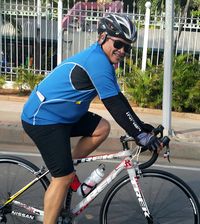 Lengangnya jalanan ini dimanfaatkan oleh Sekretaris Kabinet Pramono Anung untuk menyalurkan hobinya: bersepeda.