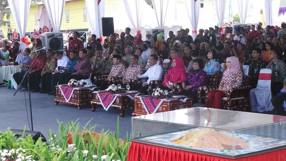 Presiden Jokowi meresmikan Taman Nasional Gunung Tambora di Dompu, Nusa Tenggara Barat. Usai acara, Jokowi menemui warga yang hadir di padang savana Dorocanga, Dompu, NTB.