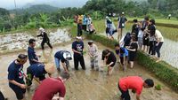 Ribuan warga di Purwakarta berkumpul bersama di Taman Pasanggrahan Padjajaran untuk menggelar hajatan, Seba Nagri, sebagai bentuk syukur atas hasil pertanian.