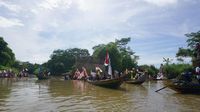 Selama kurang lebih 45 menit menyusuri sungai menggunakan perahu, rombongan parade pun akhirnya sampai di tempat finish.